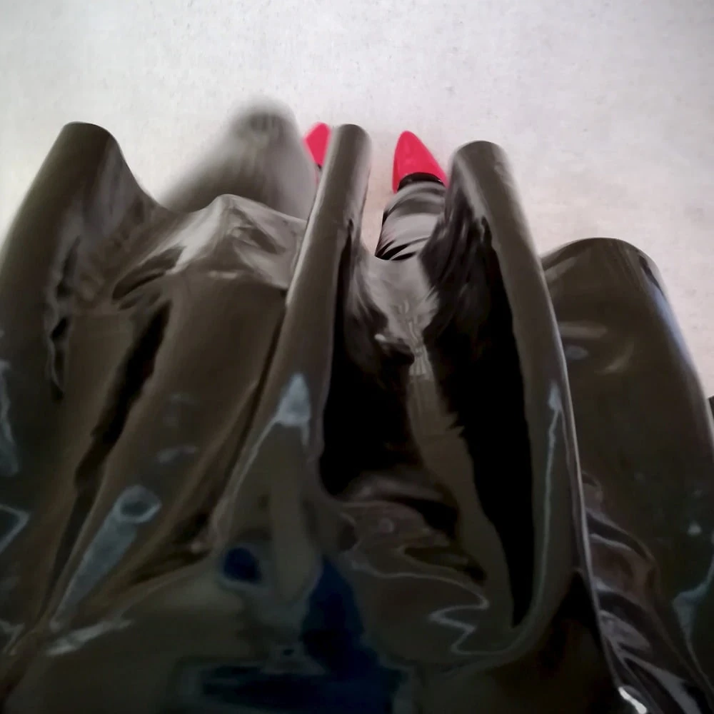 I'm drawn to latex that's tight or hanging loose in folds and pleats; or, better still, both tight and loose in sensual juxtaposition. The flowing movement of a latex dress entices and excites; the subtle quivering of a latex skirt fascinates and thrills.